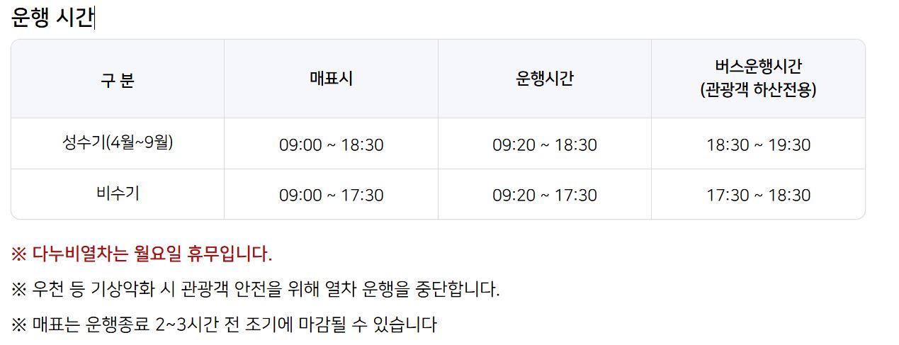 - 운행 시간: 오전 9시 ~ 오후 7시 (15분 간격)