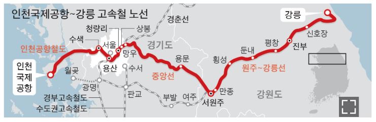 KTX 강릉선 노선도는 수도권에서 강릉까지 연결되는 동해선 고속열차 노선입니다.